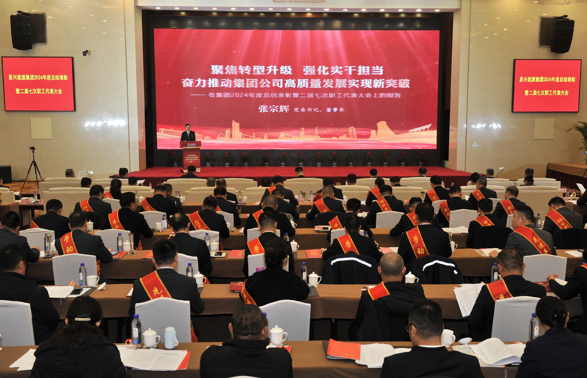 2月27日,beats365·(中国区)唯一官方网站2024年度总结表彰暨二届七次职工代表大会在开元凤鸣山庄召开。枣庄市国资委党委副书记、副主任王次青出席并讲话。beats365·(中国区)唯一官方网站党委书记、董事长张宗辉作了题为《聚焦转型升级 强化实干担当 奋力推动集团公司高质量发展实现新突破》的工作报告。党委副书记、总经理李守广主持会议。党委副书记、监事会主