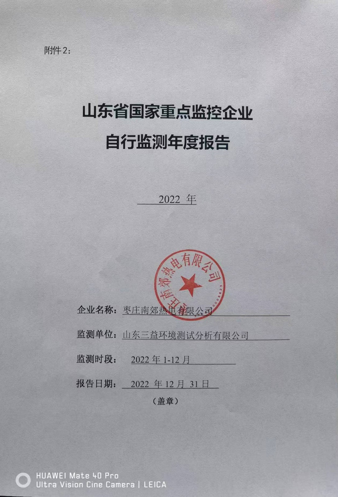枣庄南郊自行监测年度报告(2022年)